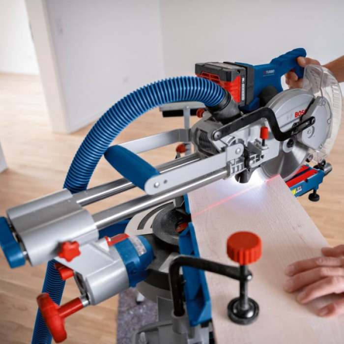Bosch GCM 18V-216 D — это флагманская беспроводная торцовочная пила для профессионалов, для которых свобода перемещения и точность являются критически важными.