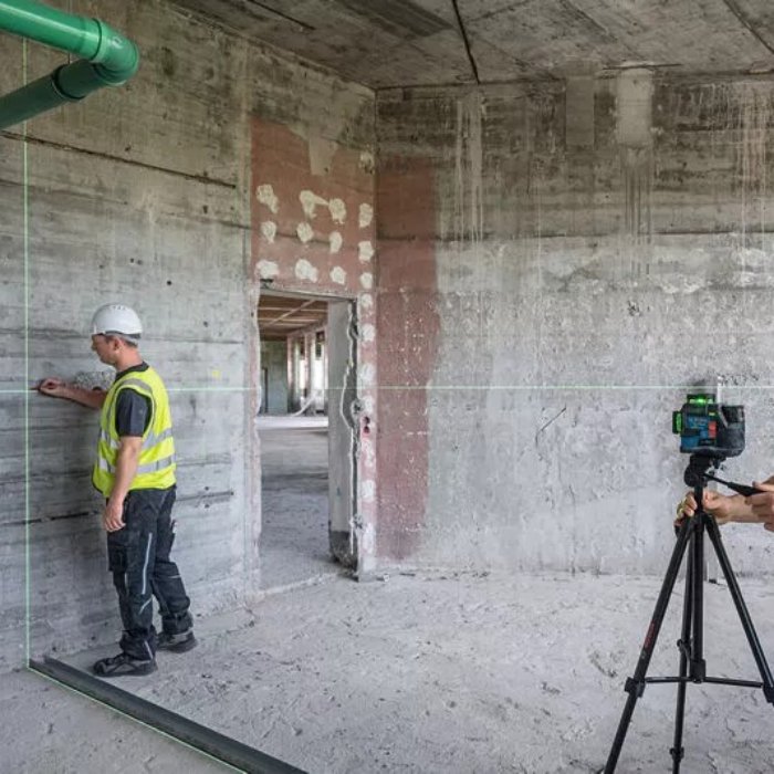 Построение 3 плоскостей и 3 точек: Одновременно проецирует две вертикальные и одну горизонтальную линии, а также точки отвеса вверх, вниз и вперед.