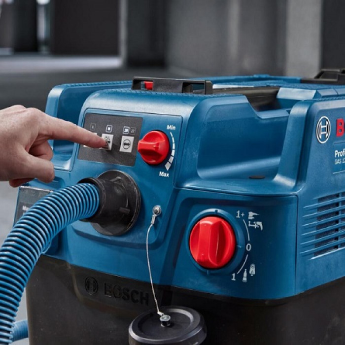 Bosch Professional GAS 12-40 MA — это мощный и надёжный строительный пылесос профессионального уровня, рассчитанный на интенсивную работу на стройплощадках и в мастерских. Он обеспечивает высокий уровень защиты оператора благодаря классу пыли M, стабильно сильное всасывание за счёт автоматической очистки фильтра (AFC) и удобство в ежедневном использовании.